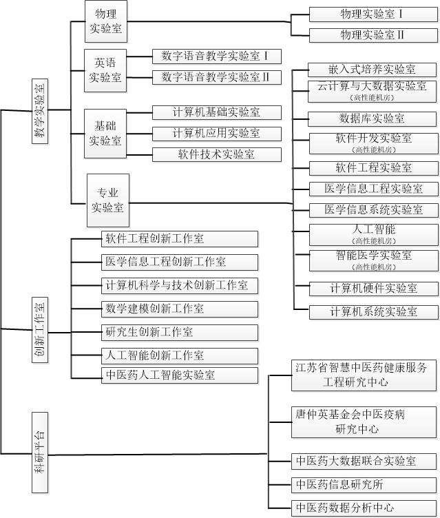 人工智能實驗中心獲批有“信息技術(shù)教學實驗中心”和“醫(yī)藥信息技術(shù)實踐教育中心”2個省級實驗教學與實踐教育中心。中心總面積為2960平方米,有13個教學實驗室、7個創(chuàng)新工作室以及5個科研平臺,下圖為實驗中心結(jié)構(gòu)圖。
